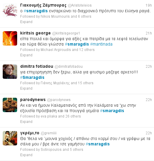 Μια αυτοσχέδια μαντινάδα (ο Θεός να την κάνει δηλαδή) του σκηνοθέτη Γιάννη Σμαραγδή, αφιερωμένη στον πρωθυπουργό Αντώνη Σαμαρά πυροδότησε πλήθος αρνητικών σχολίων στα κοινωνικά δίκτυα. Ο σκηνοθέτης, δημιουργός γνωστών (πλην ιδιαιτέρα μετρίων) ταινιών όπως οι «Ο Θεός αγαπάει το χαβιάρι», «Ελ Γκρέκο», «Καβάφης», βρέθηκε στο μάτι του κυκλώνα και -όπως γίνεται συνήθως- της μαζικής διαπόμπευσης.