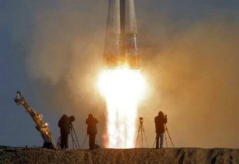 Το «ολυμπιακό» Soyuz εκτοξεύτηκε από το κοσμοδρόμιο Μπαϊκονούρ στη στέπα του Καζακστάν (Φωτογραφία: Associated Press )